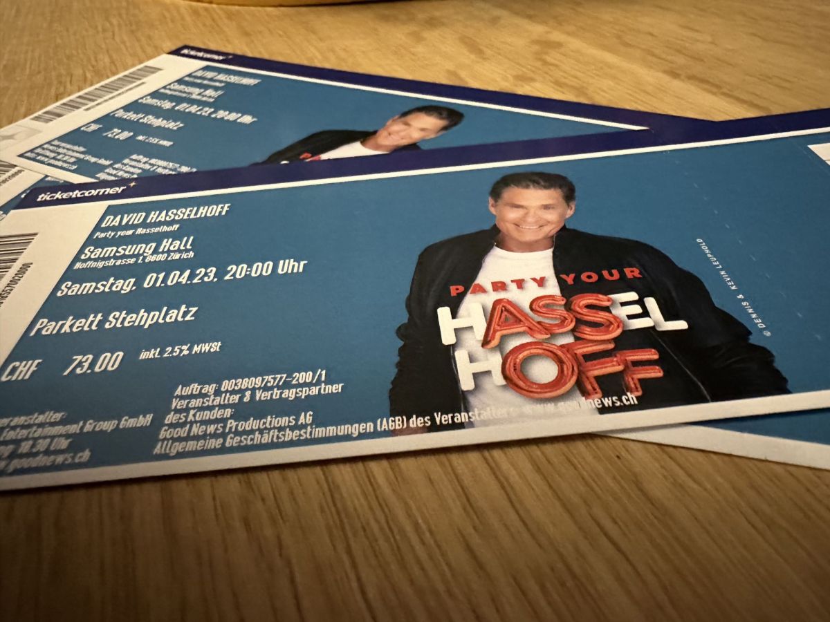 L’actur american ha in seguit adüna darcheu pisserà per lingias grassas – però na adüna be positivas. Gronda es perquai statta la surpraisa avant bod ün on, cur ch'eu n’ha surgni ün bigliet per ün concert da David Hasselhoff als 1. avrigl 2023 a Dübendorf. Viva quel insomma amo? Nun e’l eir najantà? O es quai tuot be ün spass d’avrigl? Intant s’ha sclerida la chosa – il concert chi vess gnü lö in ün mais es nempe gnü sdit giò. Our da motivs da sandà, vegna scrit in differentas gazettas. Ed uossa e’l quia darcheu, quel mumaint da libertà – liber da nu stuvair visitar il concert dal senior intant ün pa senil – chi prouva da chantar actualmaing dafatta in tudais-ch – e da pudair far be quai chi’m plascha.