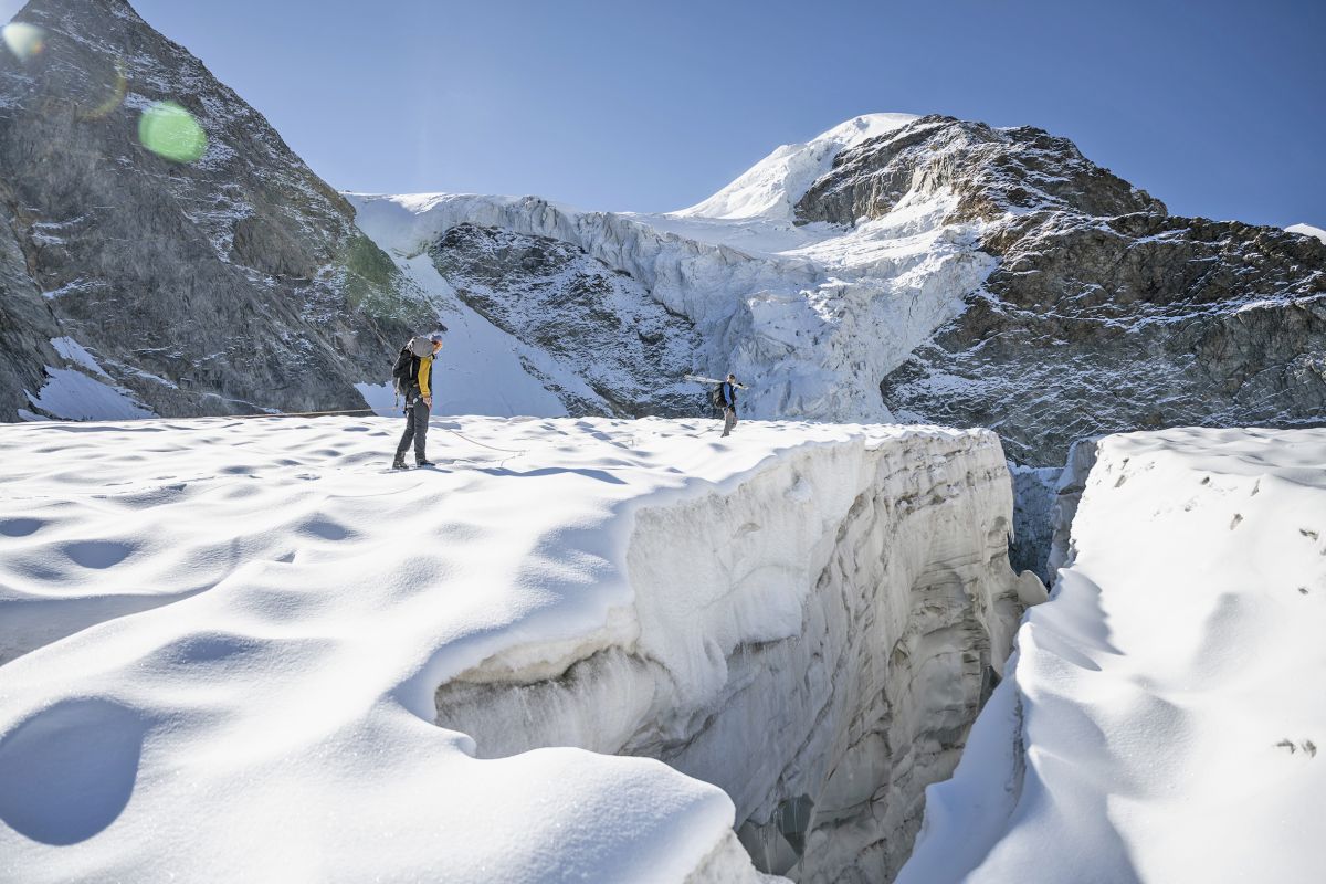 Matthias Huss in acziun l‘an passo ad imsürer il Vadret Pers sper la Diavolezza (fotografia: Keystone/Mayk Wendt).