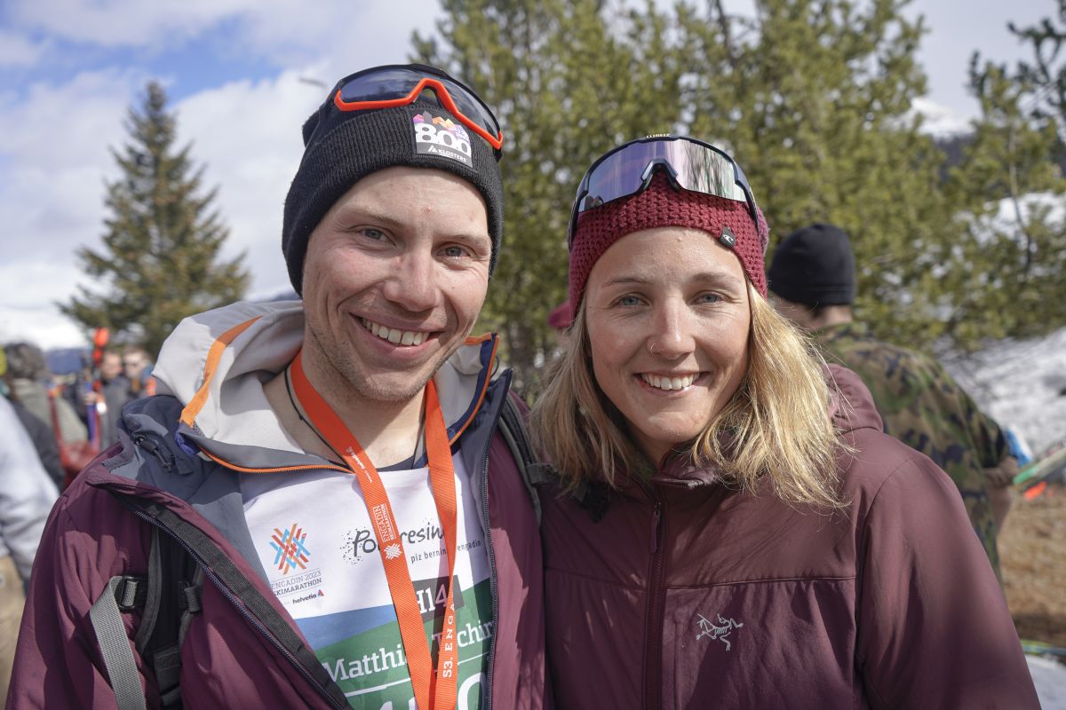 Ausgelassen war die Stimmung im Zielgelände in S-chanf. Die EP/PL passte dort ein paar Teilnehmer ab. Das Fazit fiel überwiegend positiv aus: Viele waren trotz teils sulziger Loipe froh, dass der Engadiner überhaupt stattfand und lobten die Organisatoren.