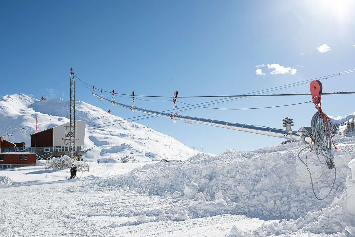 Das Beschneiungsseil als Teil einer Testanlage an der Diavolezza-Talstation. Das Projekt «MortAlive» will diese Technologie weit über den Morteratschgletscher hinaus etablieren. Foto: Mayk Wendt