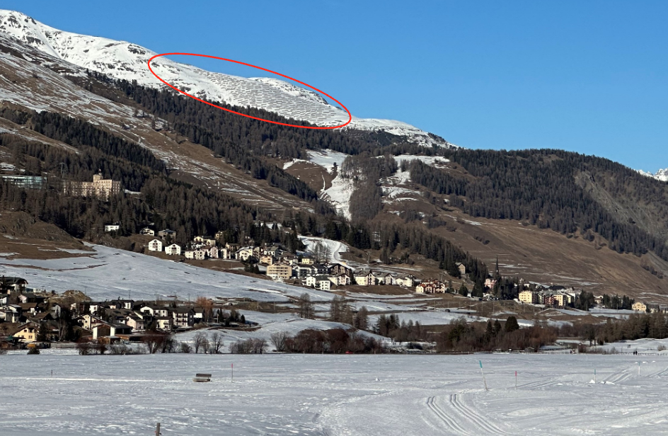 Die angedachte PV-Anlage «Murter» auf Gemeindegebiet von S-chanf (Markierung) hat laut den Projektinitianten das Potenzial, den jährlichen Stromverbrauch von rund 30 000 Haushalten CO2-neutral zu decken. Foto: Energia S-chanf