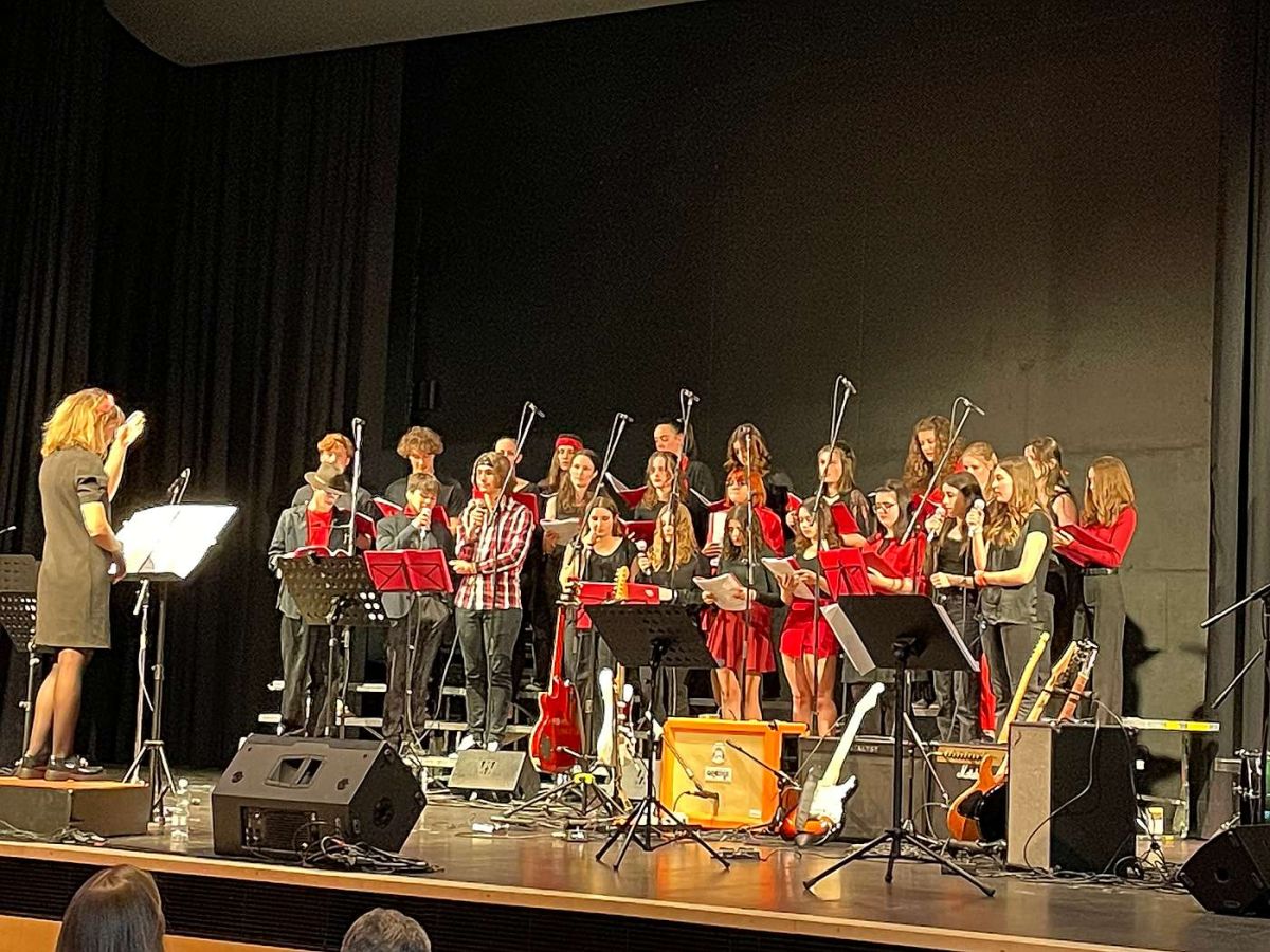 Der Auftakt zum Abend gestaltete sich ruhig mit einem klassischen Stück des deutschen Komponisten Carl Stamitz, sauber vorgetragen vom Ensemble mit Lea Domke (Geige), Selina Poo (Querflöte) und Miriam Brang (Bratsche). Sehr schön dann das Stück «Vivo per lei» von Andrea Bocelli, dem italienischen Popsänger, welcher sich später mehr und mehr der Klassik zuwandte. Dieses Stück, vorgetragen nur vom Ensemble und den Solistinnen brauchte Mut, die Jugendlichen lösten die schwierige Aufgabe souverän. Es folgten vier Stücke aus unterschiedlichen Zeitepochen in verschiedenen Sprachen vorgetragen, darunter auch das bekannte «Il cumün in Silenzi» von Tumasch Dolf. Etwas verhalten dann die Klavierballade «Someone you loved» des irischen Singer und Songwriters Lewis Capaldi.