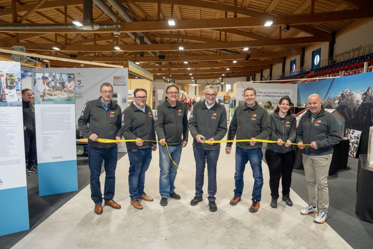 Die Vorstandsmitglieder der Società da commerzi e mansteranza Engiadina Bassa haben die EBexpo 2023 eröffnet (Foto: Foto Taisch Scuol).