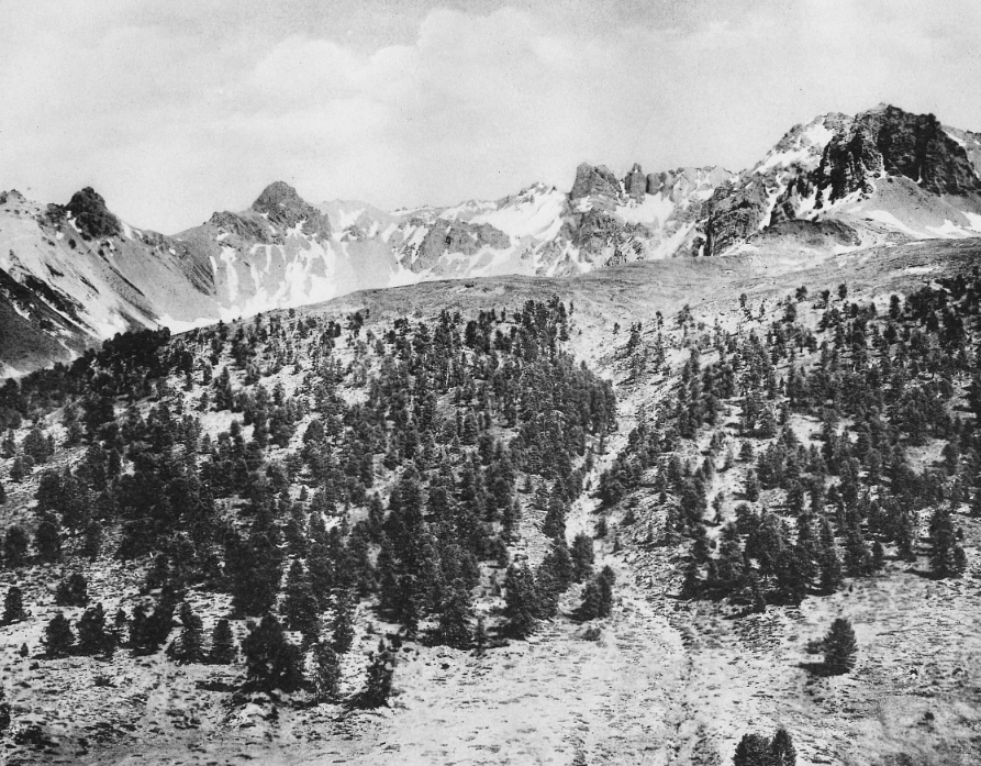 Anfang des 20. Jahrhundert war der Tamangur in der Val-scharl durch Übernutzung bedroht. Durch ein Gedicht von Peider Lansel wurde er zum Symbol des Kampfes um den Erhalt der rätoromanischen Sprache. Foto: Coaz & Schröter