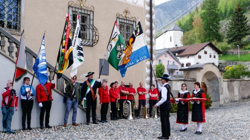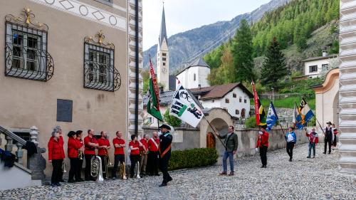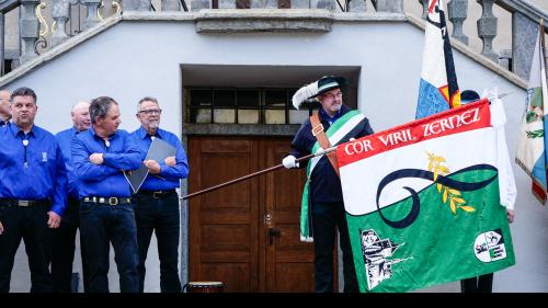 In seis pled da salüd da la suprastanza cumünala ha il capo cumünal Domenic Toutsch stimà il chant sco veglia fuorma culturala chi possa tant far plaschair a la glieud sco eir dar cordöli in mumaints greivs. Dont üna schnacca ha’l dit, cha’l chant saja stat in sia fuorma oriunda eir ün möd pratic per scurrantar bes-chas rapazzas, «intant però, s’ha’l sviluppà inavant il chant in möd multifari». Toutsch ha eir lodà ils respunsabels dal cor viril: «Els sun its avant cun bun exaimpel ed han fingià inclus la vopna dal cumün fusiunà sülla bindera nouva e reunischan eir commembers da tuot las fracziuns da Zernez in lur ravuogl.» Cun ün tschegn sül binderal superbi Jens Dettmann e la bindera nouva ha’l conclus: «Quista bindera demuossa eir l’unità e la solidarità i’l cor viril Zernez», ed ha invidà ad ün aperitiv cumünaivel.