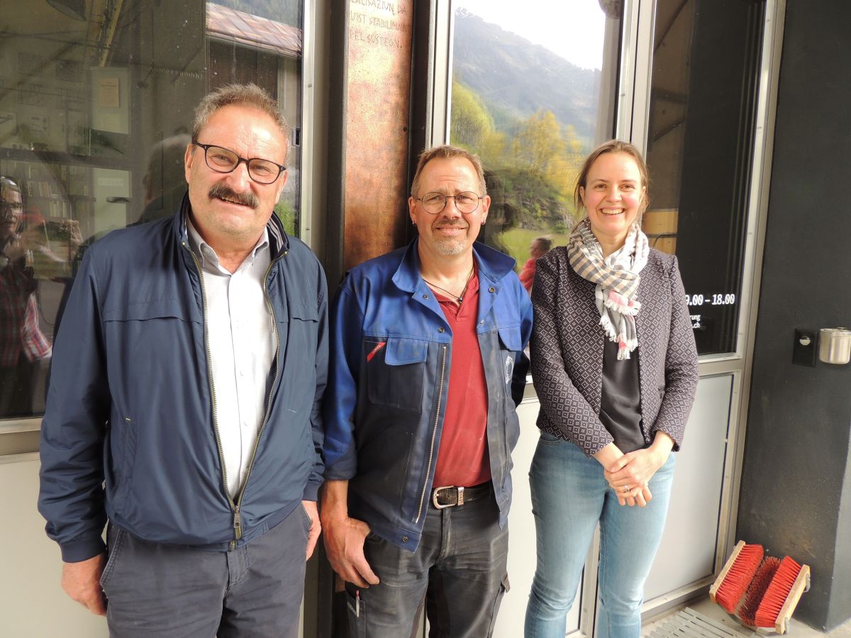 Victor Peer, Thomas Lampert e Martina Schlapbach (da schnestra) pro la surdatta dal premi d’innovaziun (fotografia: Benedict Stecher).