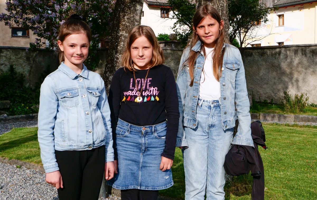 Ils vendschaders da la categoria 5./6. classa: Laila Thoma, Burtel Defila, Gloria Pietrogiovanna (fotografia: Jon Duschletta).