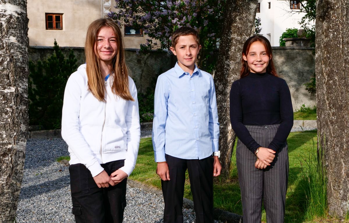 Ils vendschaders da la categoria 7. - 9. classa: Joao Pedro Jardim Cattarino, Ursina Bonorand e Jana Hew, Luan Hofmann (fotografia: Jon Duschletta)