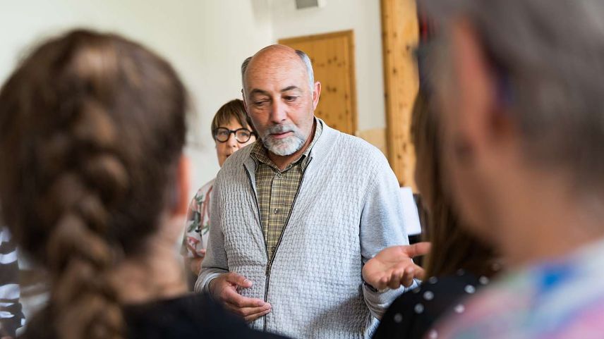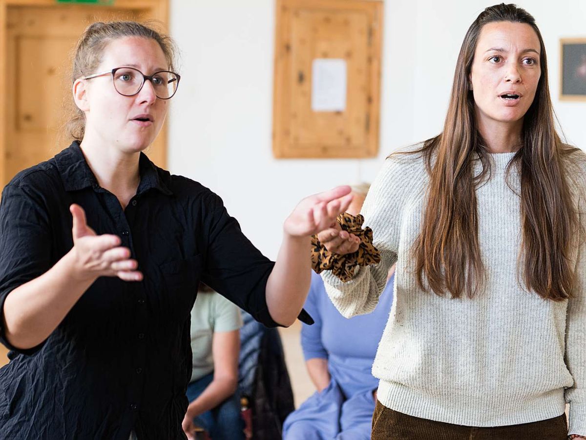 «Ihr Jodlerinnen müsst eine Einheit bilden. Keine soll lauter sein als die andere», sagt Salzmann. Beim Chor vermisst sie gerade etwas das Feuer. «Das Lied handelt von einer Bergwanderung. Das steht: ‹Laufisch übre Grat gäg d‘Flue. Stellt euch das bildlich vor, ich will das im Lied hören und die Freude in den Gesichtern sehen. Und haltet bitte beim Singen die Spannung, von Kopf bis Fuss. Wir üben das noch einmal.» Noch ist Bea Salzmann nicht zufrieden. «Ihr müsst davon wegkommen, Ton um Ton zu singen. Ihr müsst das Lied erzählen, mit den Tönen spielen», erklärt sie.