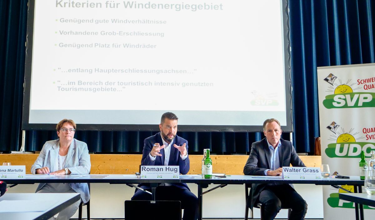 Am Freitag präsentierte die SVP in Chur ihre Kritik gegenüber den «drastischen Plänen» der Regierung im Zusammenhang mit dem «Richtplan Energie». Besonders stört sie sich an den geplanten Windparks und mobilisiert mit markigen Visualisierungen dagegen.