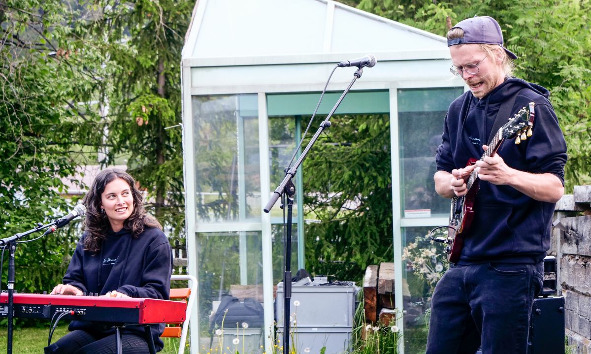 Cinzia Regensburger und Arnaud Pas spielten im Garten der Bar 47 in Zernez. Foto: Jon Duschletta