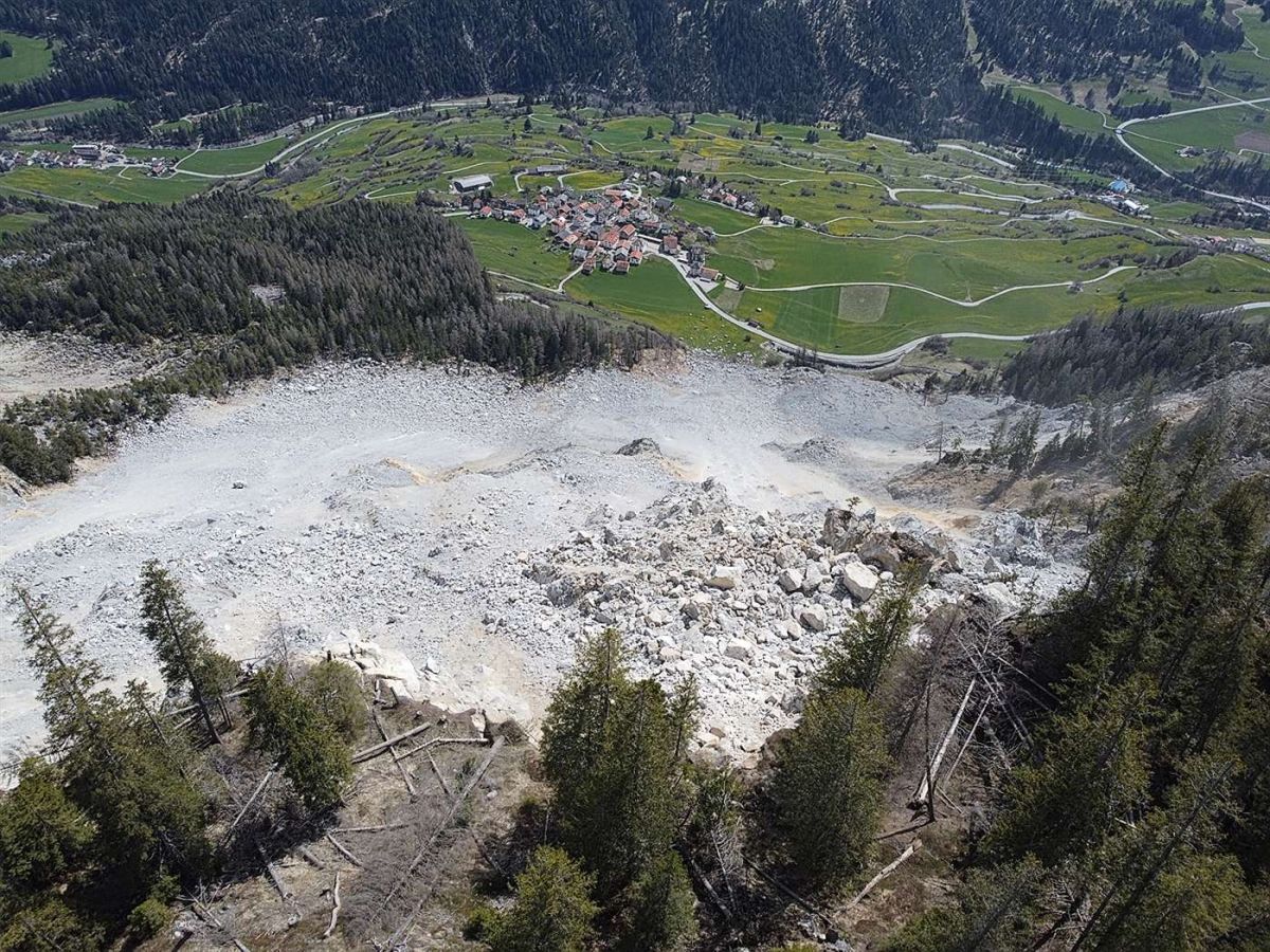 Nachdem um Mitternacht ein grosser Schuttstrom im so genannten «Insel»-Bereich am Berghang über dem evakuierten Dorf Brienz abgegangen ist, haben die Felsmassen das Dorf offenbar nur knapp verfehlt.