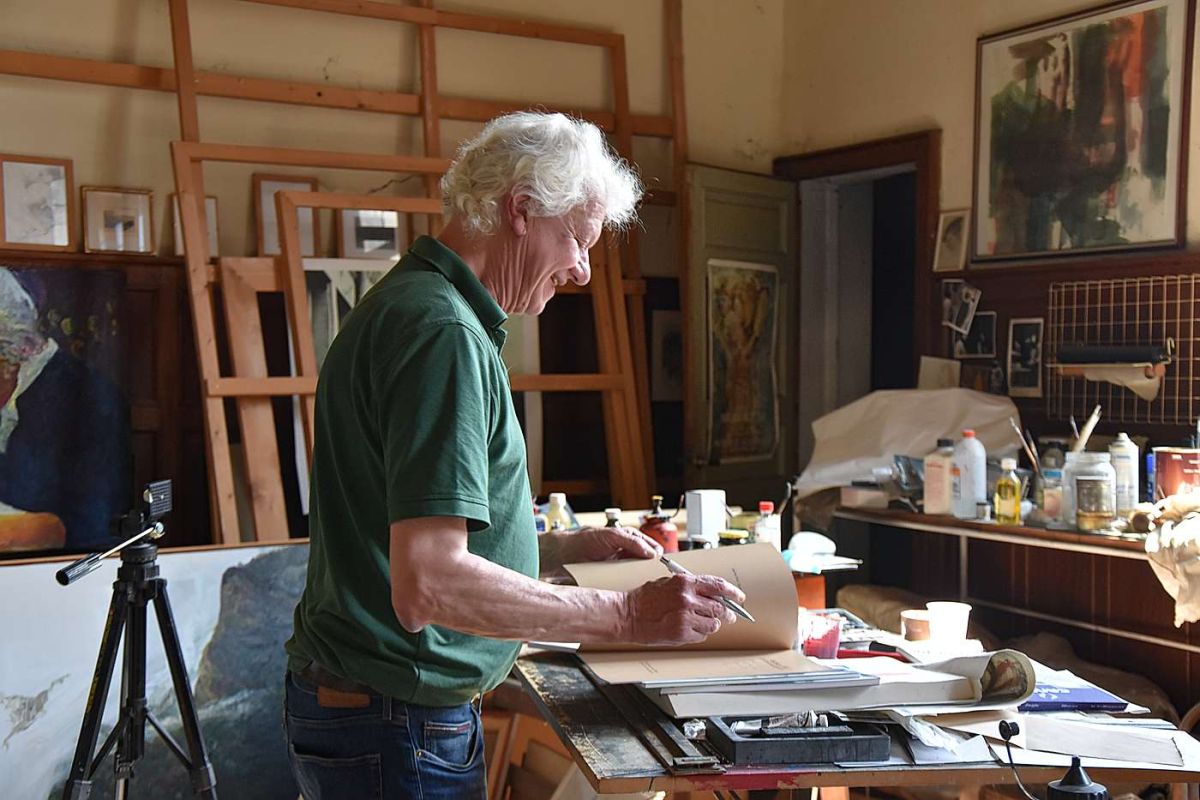 Bruno Ritter beim Arbeiten in seinem Atelier in Chiavenna. Foto: Urs Oskar Keller