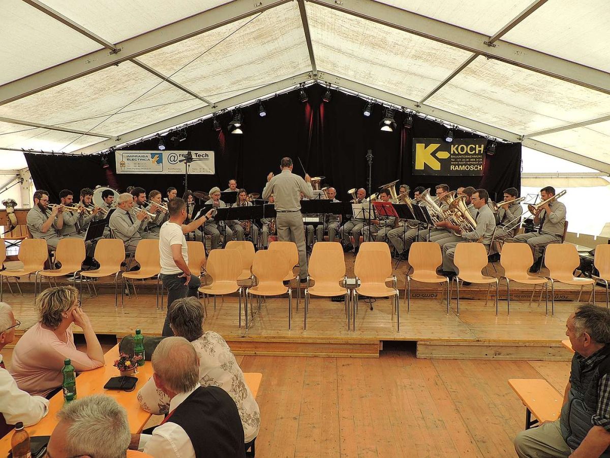 La Società da musica da Tschlin dürant sia preschantaziun. fotografi: Benedict Stecher