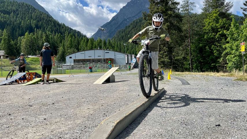 Die Kinder sind zwischen sechs und 13 Jahre alt. Während die älteren Jungs schon Sprünge üben, sind die teils jüngeren Mädchen in der Gruppe noch auf dem Platz vor dem Werkhof und lernen Slalom fahren, Hindernisse bewältigen und auf zwei Rädern ein schmales Brett zu überqueren. Auch sie sind konzentriert bei der Sache, wenn auch etwas leiser als Manuel und seine Kumpel. Es ist der erste Morgen des Camps und die Sonne scheint an einem fast wolkenlosen Himmel. Nach dem ersten Sicherheitscheck der Kindervelos und einer Vorstellungsrunde, geht es nun darum, auf spielerische Weise den sicheren Umgang mit dem Bike zu lernen. Wie bei der Skischule gibt es auch in der Bikeschule eine Art Fähigkeitszeugnis, den es zu erlangen gilt. In diesem Fall ist es der Velopass von Swiss Cycling mit verschiedenen Niveaus.