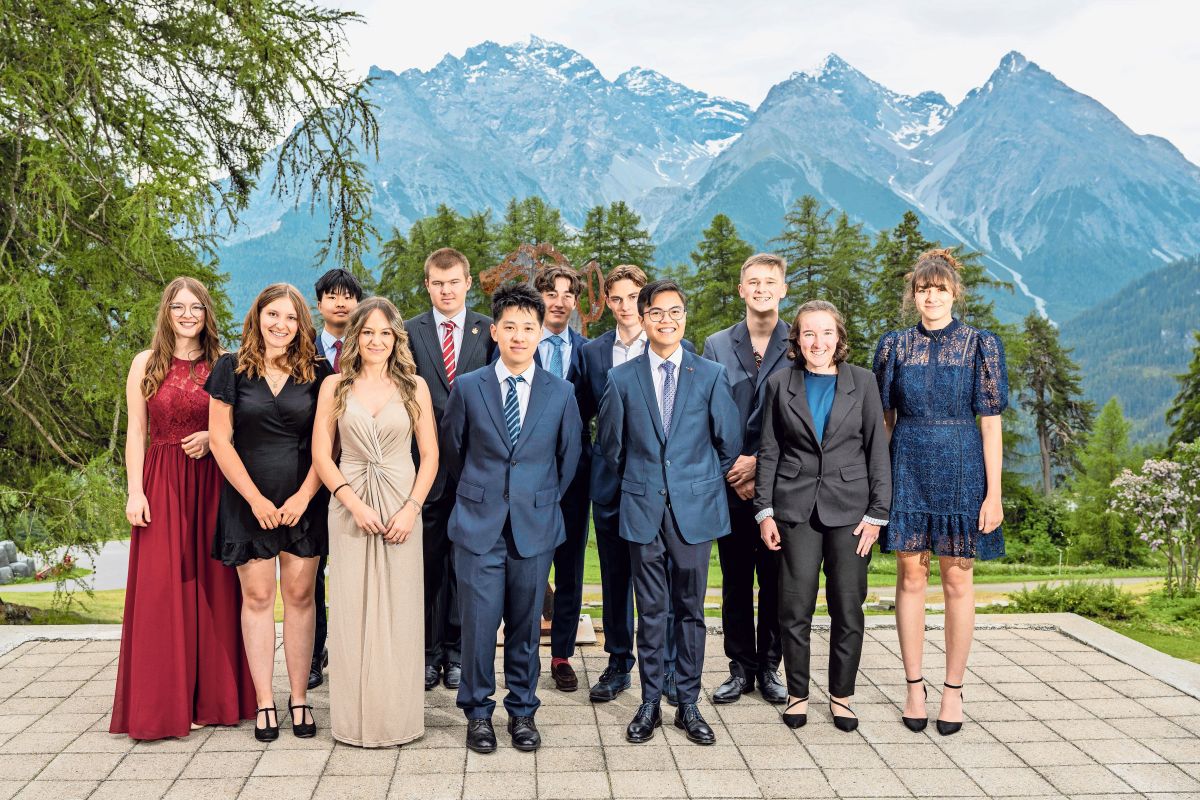 Las maturandas, ils maturands ed ils absolvents da l’International Baccalaureate da l’Institut otalpin Ftan dürant la festa da diplom (fotografia: mad).