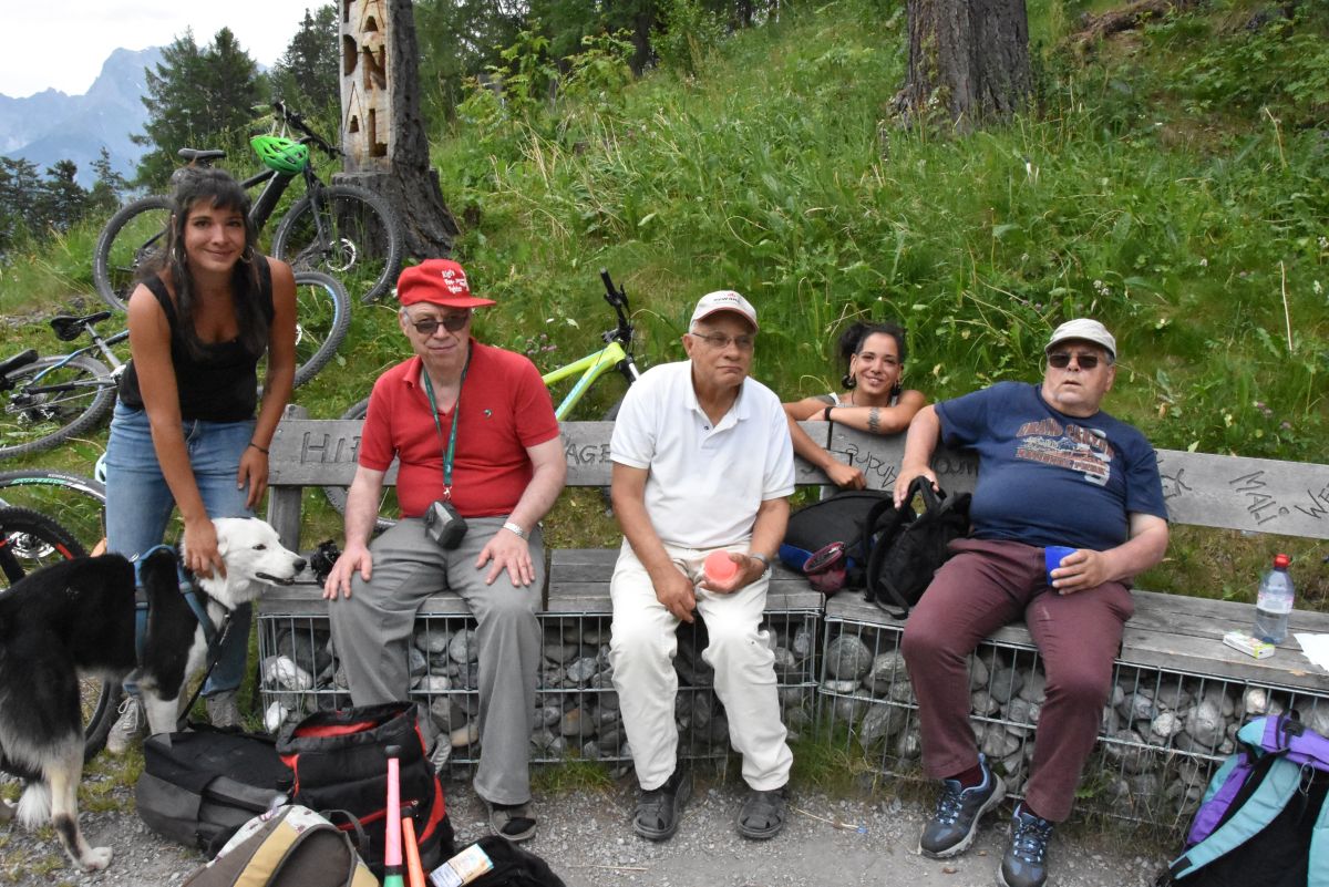 Seppi, Roland und Ernst freuen sich auf den Brätelausflug mit Vera und Jana Schnetzler von «Betreute Ferien in Sent». Mit dabei ist auch Veras Gefährte Lumpaz, ein australisch-neuseeländischer Schäfermix. Das ...