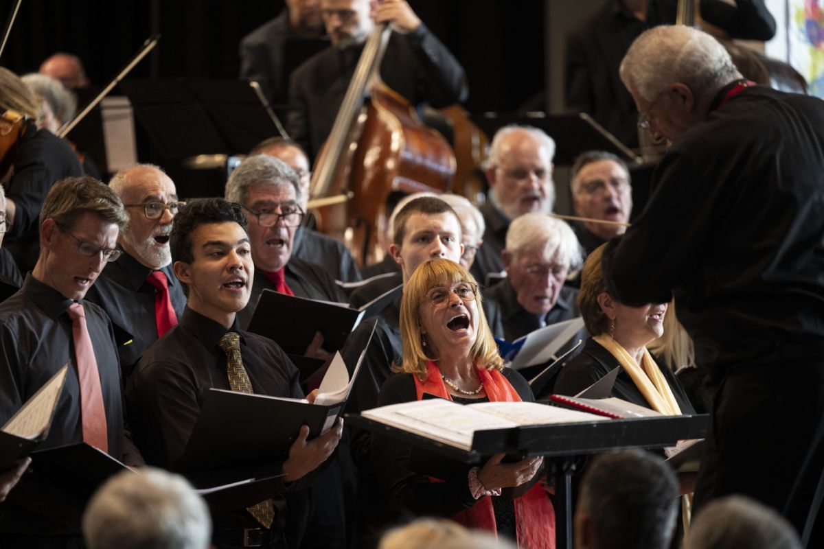 Claudio Danuser (a dretta) dirigind il cor d’operas da l’Opera Engiadina (fotografia: Mayk Wendt).