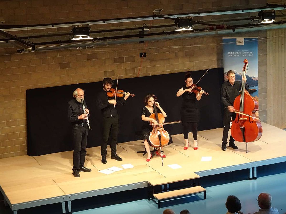 Obwohl auch das Konzert der Reihe «Wasserspiele» in die Turnhalle verlegt werden musste, zog sich das Wasser als verbindendes Element wie ein roter Faden durch den beinahe zweistündigen Auftritt. Wie die Moderatorin des Ensembles, ...