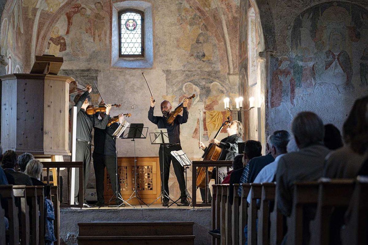 Das Quartetto di Cremona beim Konzert in der Kirche San Gian in Celerina anlässlich des Engadin Festivals. Foto: Quim Vilar