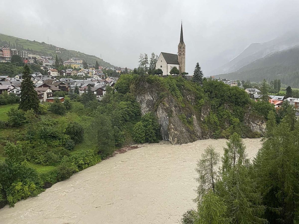 Seit Samstag sind in Südbünden grosse Mengen Regen gefallen, zeitweise begleitet von Gewittern. Das hat viele Bäche und Flüsse anschwellen lassen, teilweise traten diese über die Ufer und verursachten Schäden. Gemäss Anita Senti, Sprecherin der Kantonspolizei Graubünden, handelt es sich bei den gemeldeten Schäden eher um kleinere Ereignisse. So mussten Keller ausgepumpt werden, es blieb Geröll auf der Strasse liegen oder Gärten wurden überschwemmt. Die Feuerwehren, das Tiefbauamt und die Gemeindedienste sind gemäss Senti im Dauereinsatz. Stark betroffen vom Hochwasser war der Campingplatz Sur En in der Fraktion Sent. Dort ist der Inn über die Ufer getreten und hat den Platz teilweise überflutet. In Pontresina wurde die Tragkonstruktion der temporären Brücke zwischen Schlosshotel und Kronenhof weggerissen. Gemäss dem Naturgefahrenbulletin des Bundes, wurde die Hochwasserwarnung für den Inn von erheblich auf gross hinaufgesetzt. Am Montag Nachmittag wurde beim Inn in Martina eine Abflussmenge von 400 bis 450 Kubikmeter pro Sekunde gemessen.