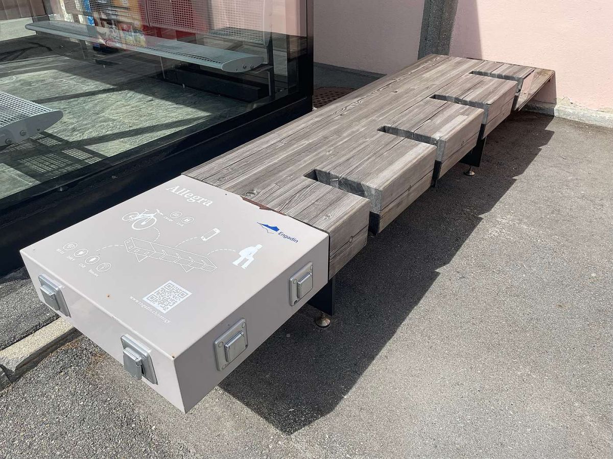 Die Idee der Energy Bänkli ist aus dem Projekt Engadin Arena entstanden. Hier können Bikes oder Handys aufgeladen werden. Foto: Reto Stifel