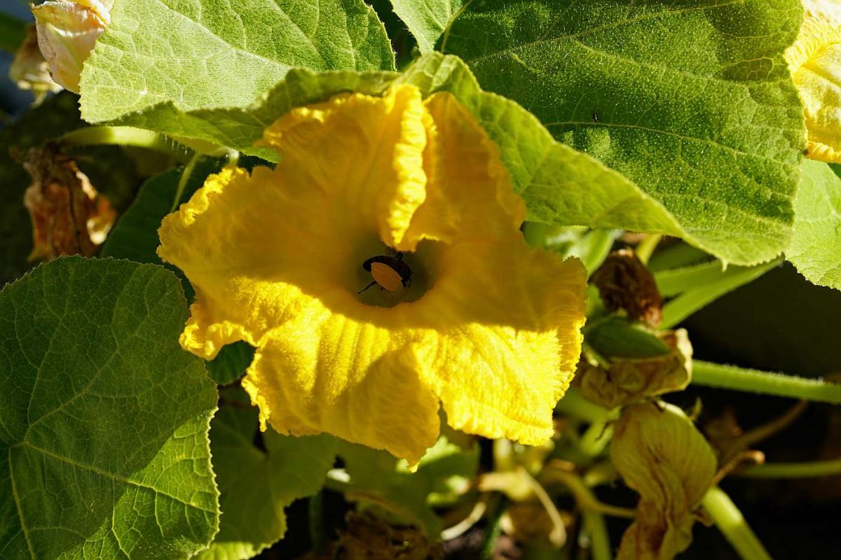 Der Kürbis ist botanisch gesehen die grösste Beere der Welt. Im Bild die Kürbisblüte. Foto: Jürg Baeder