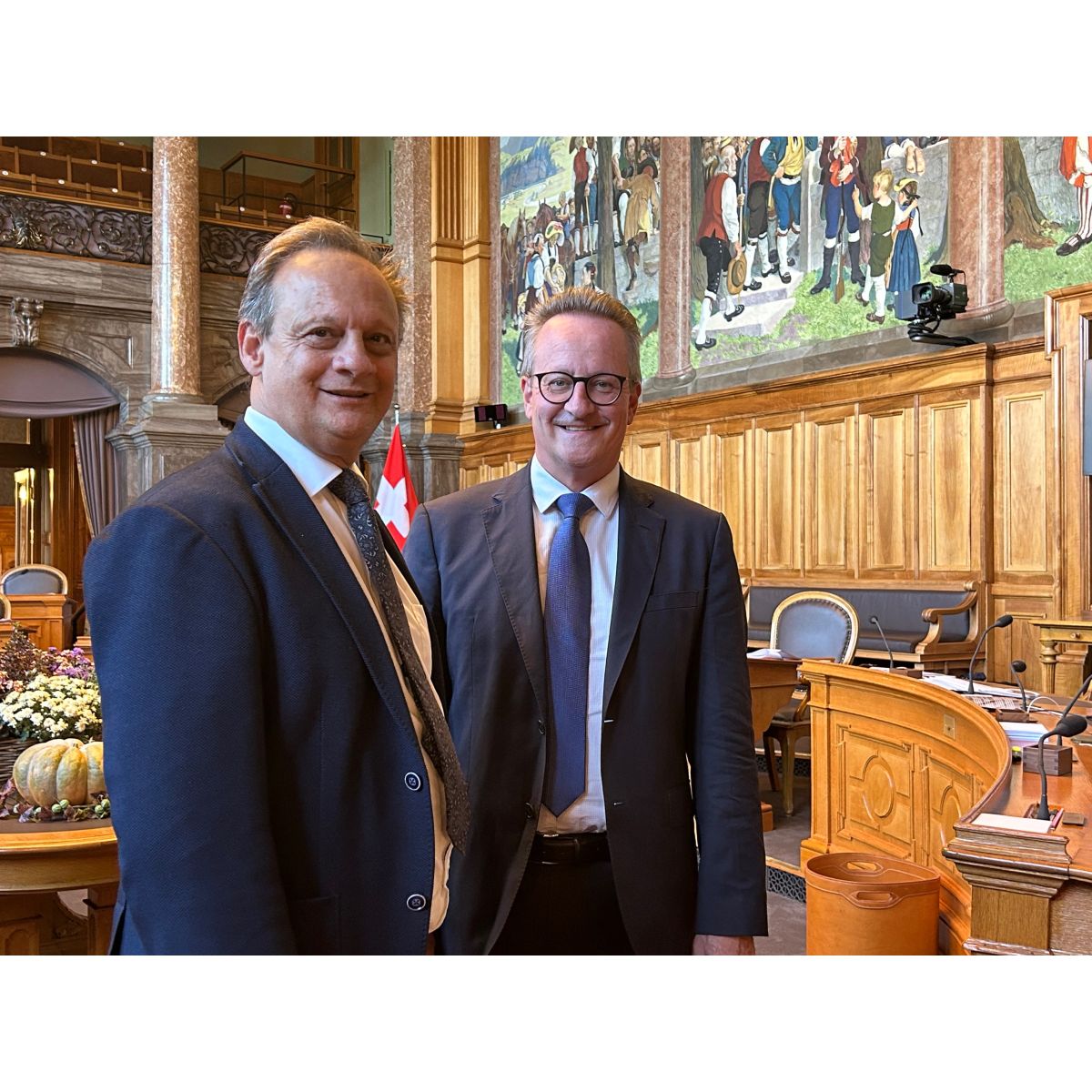 Els nu ston tremblar per üna reelecziun – Stefan Engler e Martin Schmid pon fingià planisar la prosma legislatura i’l Cussagl dals chantuns (fotografia: Claudia Cadruvi).