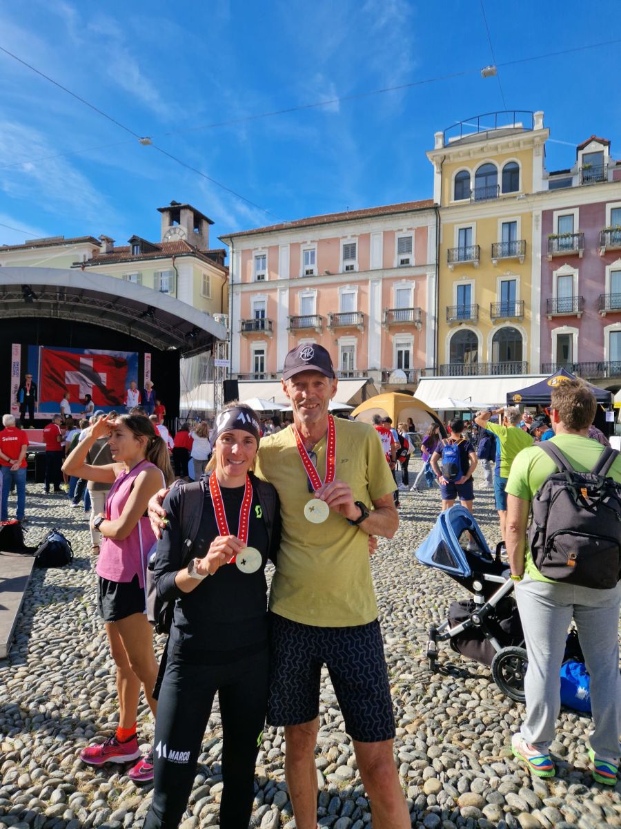 Die zwei Kategoriensieger im Halbmarathon auf der Piazza Grande in Locarno. Foto: z.Vfg