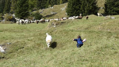 Die Hunde auf dieser Voralp gehören alle zur Rasse der Pyrenäenhunde. Diese Rasse züchtet Amélies Vater, weil sie gute Schutzhunde sind. Sie müssen viel lernen. Zum Beispiel, dass sie Menschen nur anbellen dürfen, aber keinesfalls beissen. Und sie müssen lernen, dass sie immer bei der Herde bleiben.