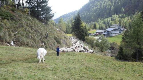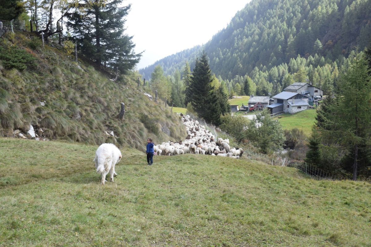 Hier in der Val Poschiavo hat es inzwischen auch ein Wolfsrudel. Es heisst «Rügiul». Cello, Öri und Alfa bilden gemeinsam ebenfalls ein Rudel – eben mit den Schafen. Im Sommer gehörte auch Flora dazu. Zu viert haben sie die Herde bewacht.