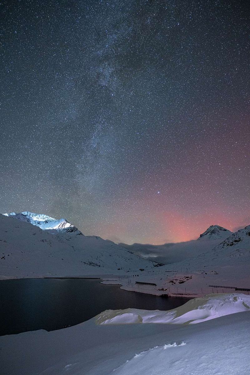 Am Sonntagabend waren Polarlichter am Himmel über der Schweiz zu sehen. Kurz nach 18 Uhr und nochmals nach 20 Uhr konnte man die Polarlichter mit blossem Auge bewundern. Der Oberengadiner Fotograf Andrea Furger hat das Naturspektakel um 23 Uhr am Ospizio Bernina festgehalten. Bei uns leuchtet Aurora borealis in Rot. Das typische grüne Licht, das von den Polregionen bekannt ist, wird in tieferen Luftschichten ausgesendet. Bereits in der Nacht auf den 25. September waren Polarlichter von der Schweiz aus zu sehen. Gemäss SRF Meteo gibt es hier nur in etwa einem Prozent der Nächte Nordlichter. Da nun aber die Sonnenflecken vermehrt am Sonnenäquator auftreten, werden sogenannte «koronale Massenauswürfe» in den nächsten Jahren häufiger Richtung Erde kommen, und somit steigt auch die Chance auf Polarlichter. (fh) Foto:Andrea Furger