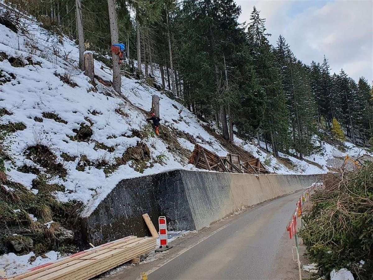 In den vergangenen Tagen hat das TBA verschiedene Massnahmen zur Hangsicherung oberhalb der Berninastrasse umgesetzt, darunter das Installieren von Schutzpalisaden sowie das Erstellen von Baumstammsperren. Heute Donnerstag sowie morgen Freitag werden oberhalb der Strasse auf einer Länge von rund 40 Metern Steinschlagschutznetze montiert. Weitere Massnahmen werden in den nächsten Wochen umgesetzt. Diese Arbeiten haben keinen Einfluss auf den Verkehr und können unter laufendem Betrieb durchgeführt werden. (staka)