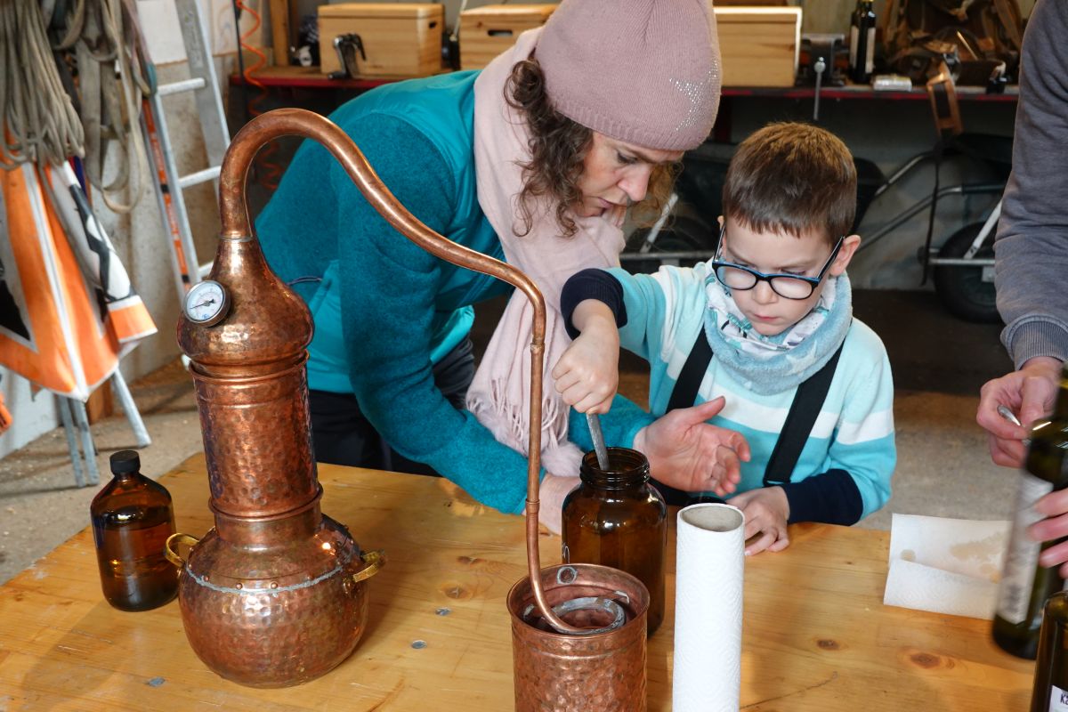 Il prüm scolaras e scolars, davo indigens ed eir ün pêr giasts: In venderdi e sonda han tuots observà a Scuol in Gurlaina co chi’s po destillar ölis eterics our da plantas da la Val S-charl, la val chi collia l’Engiadina culla Val Müstair.