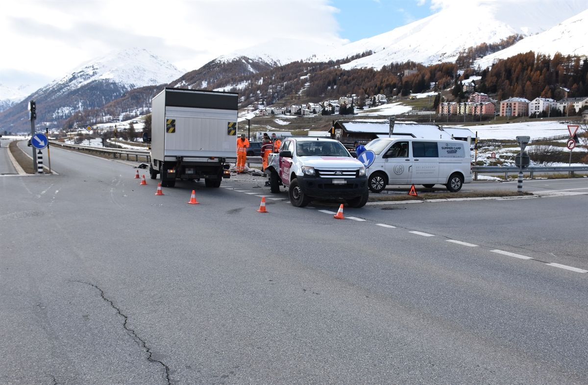 Der Verkehrsunfall ereignete sich gemäss der Kantonspolizei kurz vor 14 Uhr. Der 40-jährige Lenker eines Lieferwagens fuhr auf der Kantonsstrasse von La Punt Chamues-ch in Richtung Zuoz. Bei der Kreuzung Resgia kollidierte das Fahrzeug seitlich-frontal mit einem entgegenkommenden Lieferwagen, gelenkt von einem 37-Jährigen. Der in Richtung Zuoz fahrende Lieferwagen wurde in einen stehenden Kleinbus geschleudert. Die beiden verletzten Lenker der Lieferwagen mussten in Spitalpflege gebracht werden. Im Einsatz standen die Rettung Oberengadin, eine Patrouille der Militärpolizei für die Verkehrsregelung, ein Abschleppdienst, das Tiefbauamt und die Kantonspolizei Graubünden. (kapo)