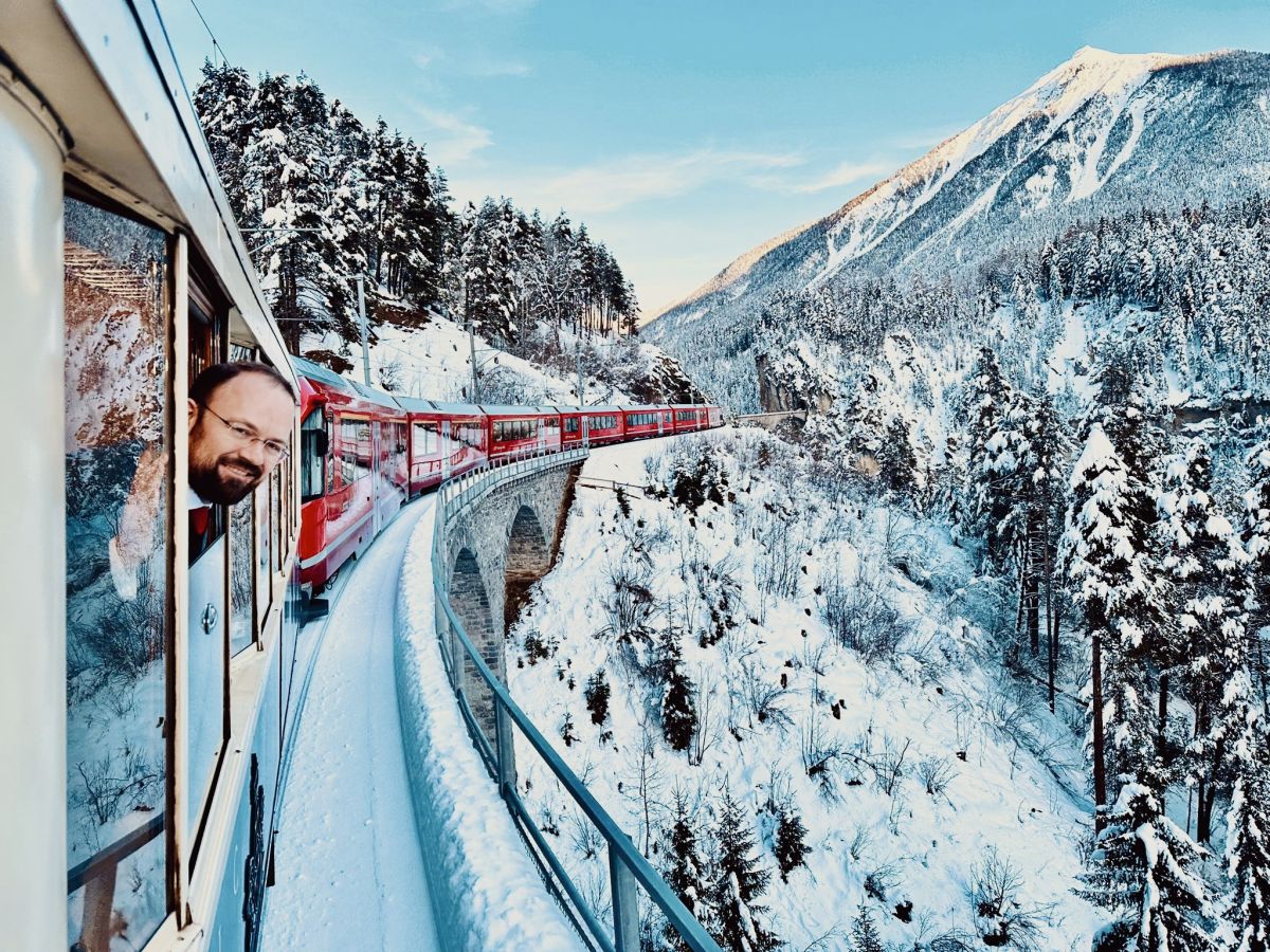 Die Reise von Chur nach Samedan bezeichnet der britische Botschafter James Squire als "magical". Foto: Camilla Chambers