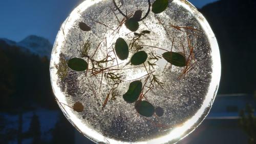 Lass dein Kunstwerk nun draussen stehen, bis es gefroren ist. Danach hältst du den Teller mit der Unterseite kurz in heisses Wasser, so dass sich das Bild herauslösen lässt: