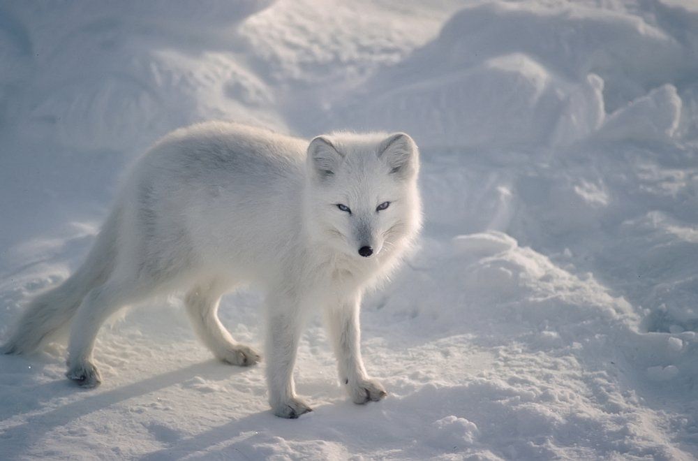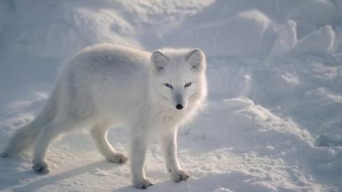 Das Winterfell ist entweder schneeweiss: Dann handelt es sich um einen Weissfuchs. Oder es färbt sich grau: In diesem Fall spricht man von Blaufüchsen.