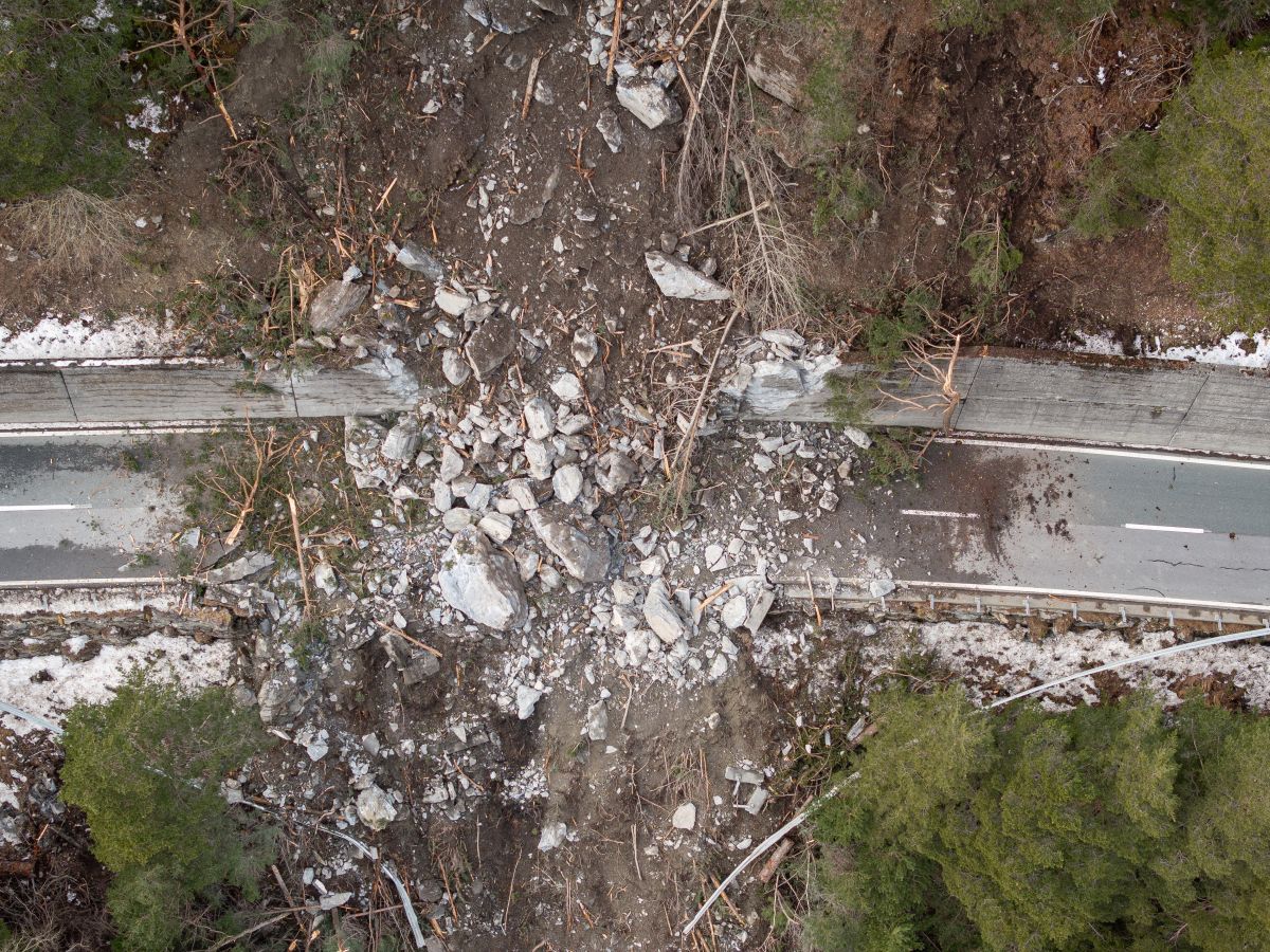 Das Drohnenbild wurde am Dienstag aufgenommen und zeigt das Ausmass des Felssturzes. Foto: Dominik Täuber