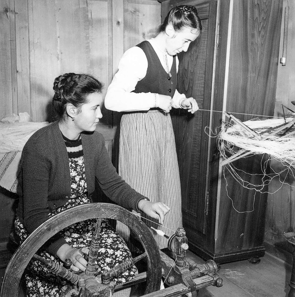 Giuvnas filunzas culla rouda da filar e’l spoul, Disla. fotografia: W. Zeller