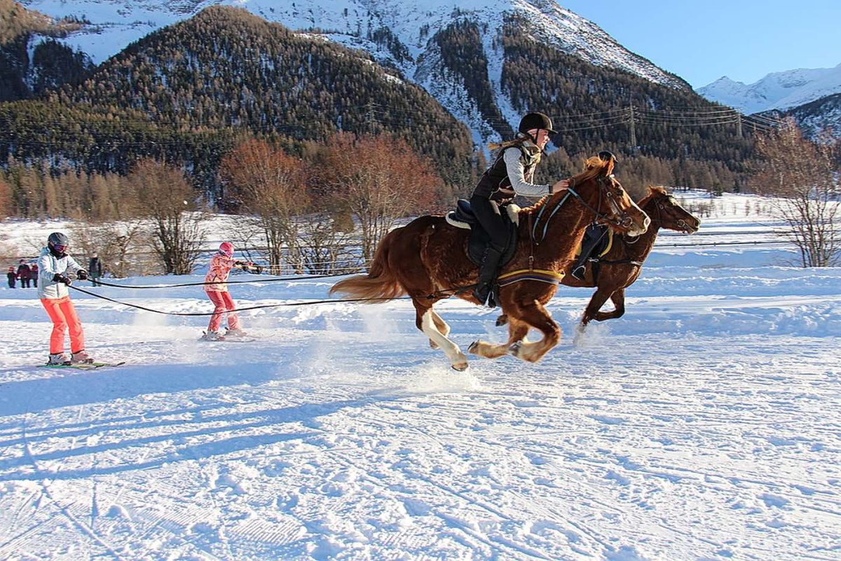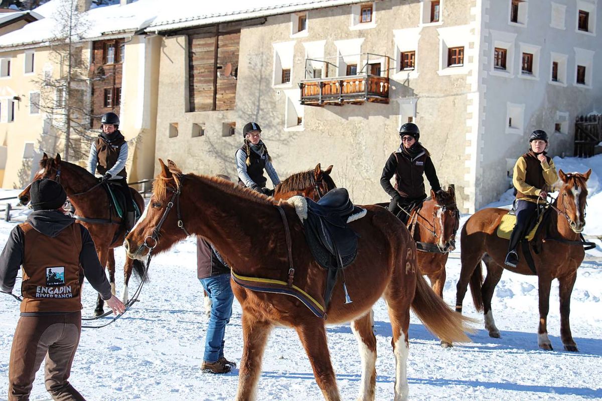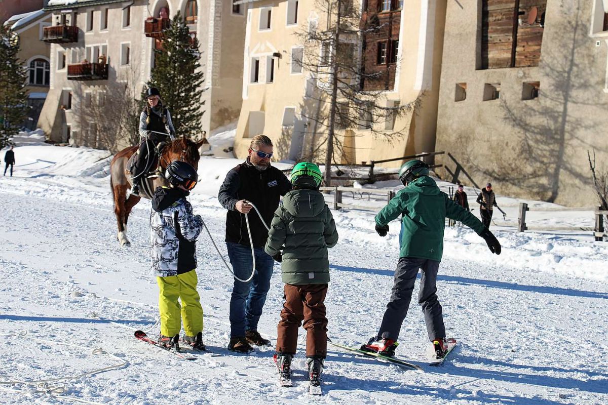 Für die Kinder der Skischule Zuoz ging es letzten Mittwoch ausnahmsweise nicht bergab, sondern mit vollem Tempo geradeaus. Einen Nachmittag lang konnten sie das Skikjöring auf der Engadin River Ranch in Madulain ausprobieren.
