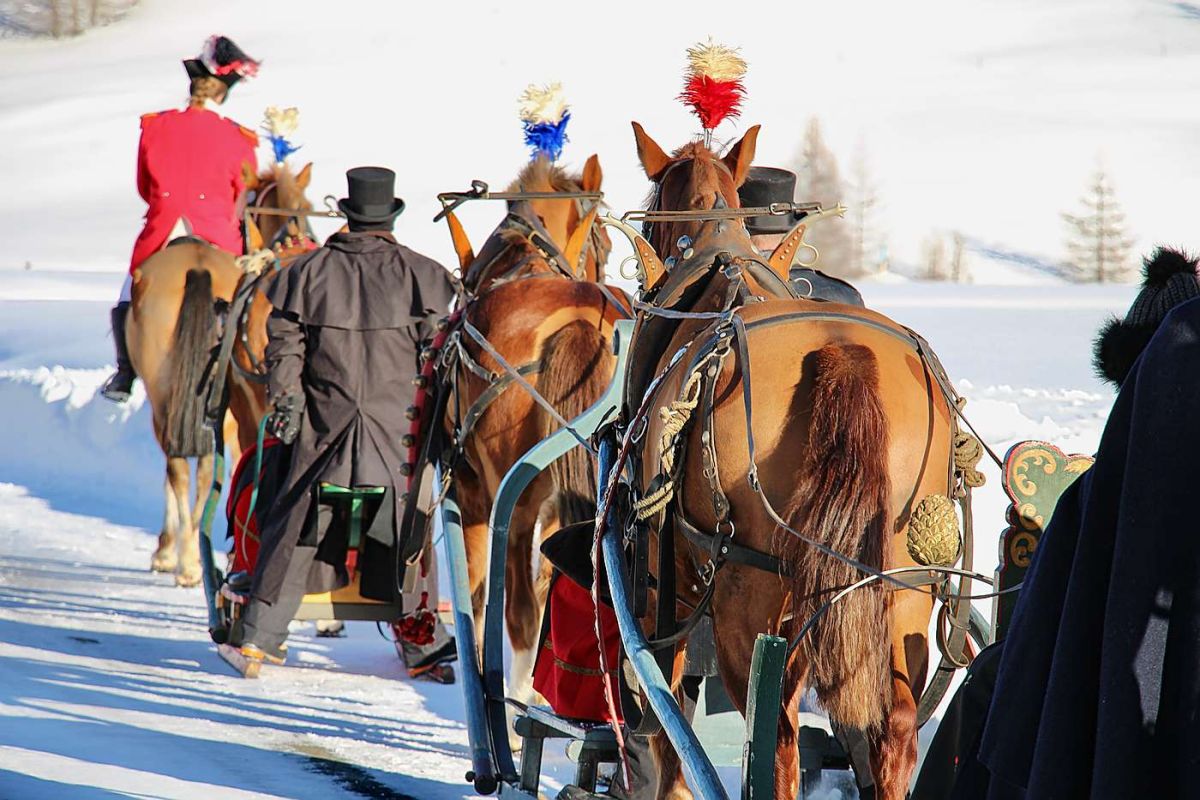 Mit sieben Schlitten brach die Volkstanzgruppe Engiadina St. Moritz und Silvaplana am vergangenen Samstag zur Schlitteda auf. Die Vorfreude war gross, und das Jauchzen bei der Abfahrt war kaum zu überhören. Die Schlitteda ist eine alte Engadiner Tradition.