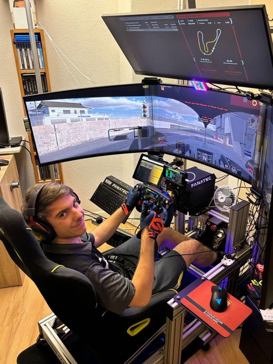 Gian Luca Palmisano es daspö l’an passo part d’üna squedra dad e-sports per ir cuorsas cul auto (fotografia: Martin Camichel).