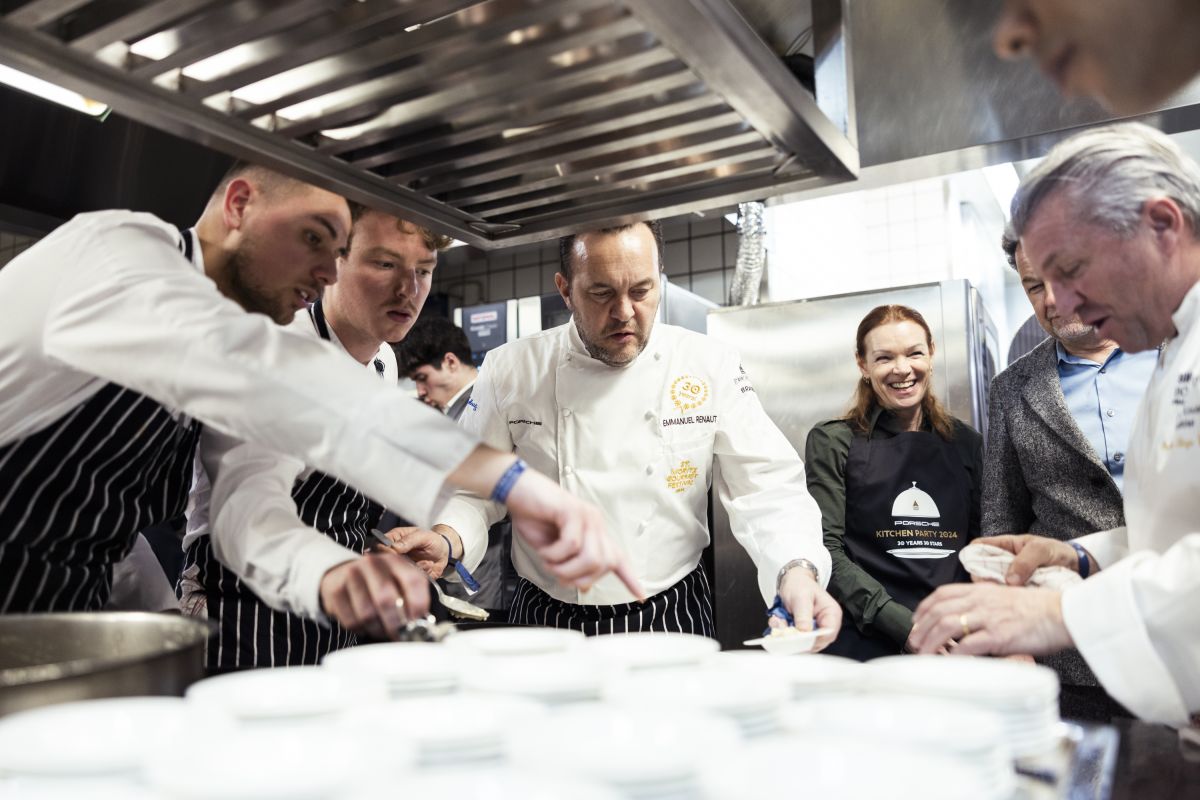 Mit der Porsche Kitchen Party im Badrutt‘s Palace startete das St. Moritz Gourmet Festival. Zehn internationale 3-Sterne-Köche bereiteten zusammen mit den Local Chefs der Partnerhotels in der Grossküche des Badrutt‘s Palace Signature Dishes für 250 Gäste zu. Ein Höhepunkt war die Patisserie von Stefan Gerber, dem Chef-Patissier vom Badrutt‘s Palace. Er liess sogar passend zum Anlass, eine Porsche Carrerabahn durch seine köstlichen Kreationen fahren.