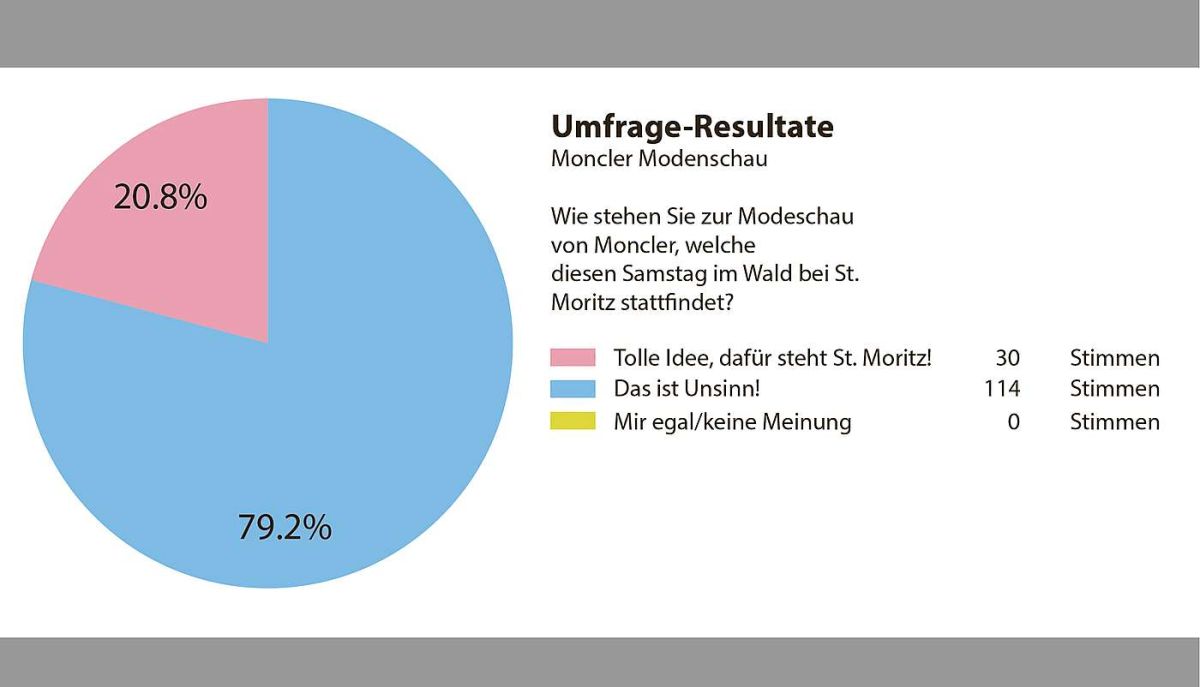 Knapp 80 % der Teilnehmenden einer Umfrage der EP/PL lehnen die Moncler-Modenschau, die am Samstag über die Waldbühne ging, ab. Die oberste St. Moritzer Touristikerin betont die wichtige weltweite Ausstrahlung, welche einen solchen Anlass hat.