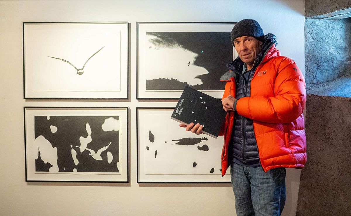 Robert Bösch in der Stalletta Madulain inmitten seiner «Birds». Er sagt: «Die Kunst des Fotografierens ist nicht,