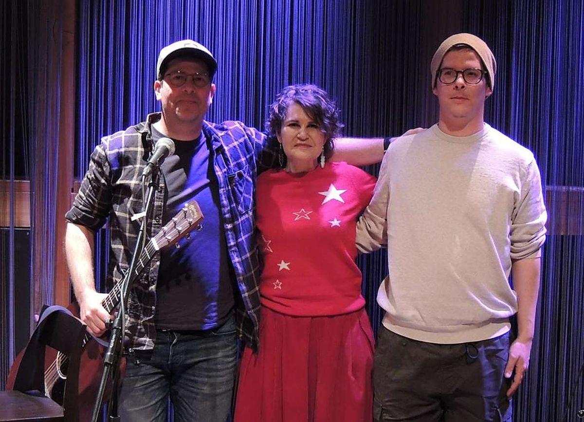 Da schnestra: Ils musicists Curdin Nicolay ed André Gemassmer cun immez l'autura Romana Ganzoni. fotografia: Benedict Stecher