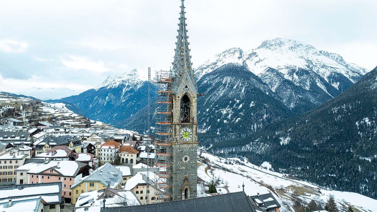 Il clucher da la Baselgia San Lurench sco ch’el as muossa pel mumaint culla puntinada e l’ascensur. fotografia: Mayk Wendt