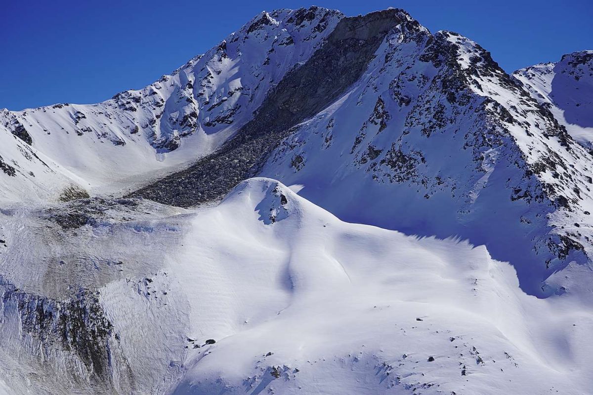 Durch schwindenden Permafrost bedingter Felssturz am Flüela Wisshorn. Foto: Robert Kenner/SLF