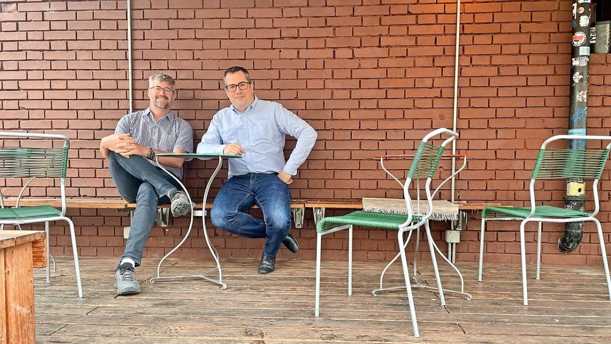 Marco Denoth (a schnestra) e Flurin Capaul s’ingaschan i’l Cussagl da la cità da Turich pella lingua rumantscha (fotografia: RTR)